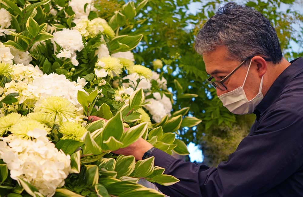 宮内庁や各宮家へもお納めしている青山花茂本店。大切な方を偲ぶお供えの花は、確かな技術力を持った青山花茂のデザイナーにお任せください。