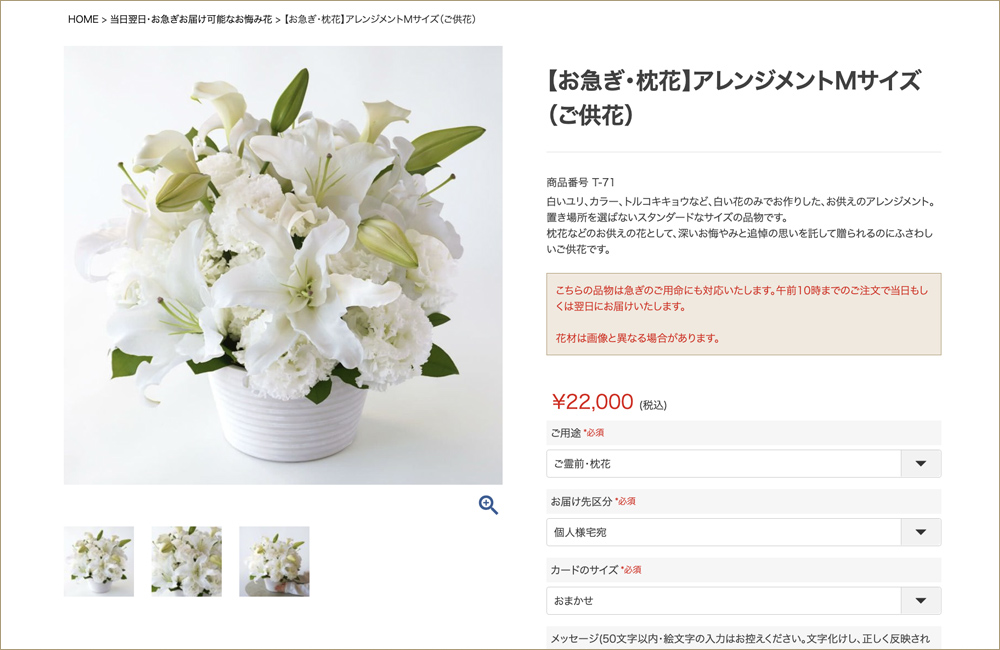 午前10時以降のご注文でも当日のお届けが可能な場合があります。